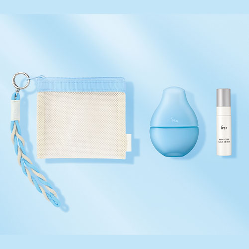 生きいきとしたハリ艶の満ちる透明感肌へと導く高機能美容液現品に、日やけ止め乳液のミニサイズ、ポーチがセットに。