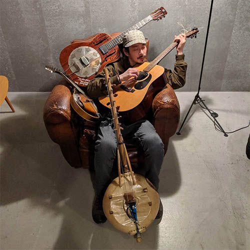 アコースティックギター、リゾネーターギター、アフリカンハープと呼ばれるカメレンゴ二などを奏で、民族音楽からエフェクターを駆使した実験音楽まで、ありとあらゆる音を飲み込みながら弦の波動を伝えている。