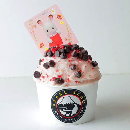 いちごのジェラートにチョコチップとラズベリーシュガーをトッピング。