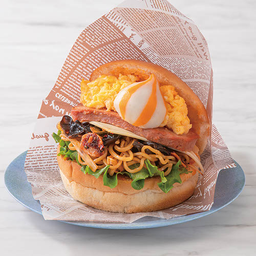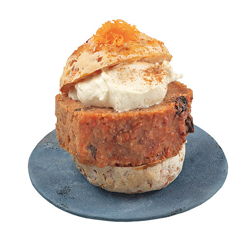 自慢のキャロットケーキを、シナモンとくるみの米粉パンでサンドしたグルテンフリーのオリジナルバーガー♪