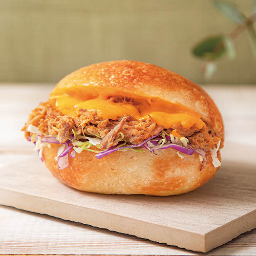 ほろほろのプルドポークと、とろ~りチーズが絶妙。北海道産小麦「春よ恋」使用のベーグルはもっちり。