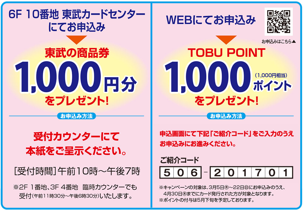 期間中、東武カードに新規ご入会いただくと、