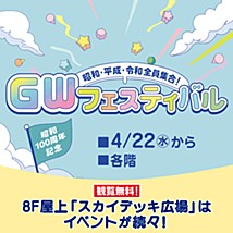 ※当日4/29(水・祝)午前10時より、8F屋上「スカイデッキ広場」にて観覧整理券を配布いたします。