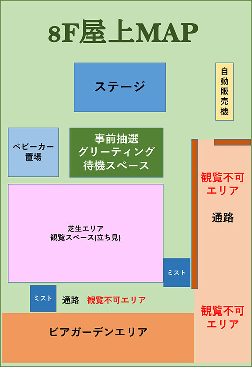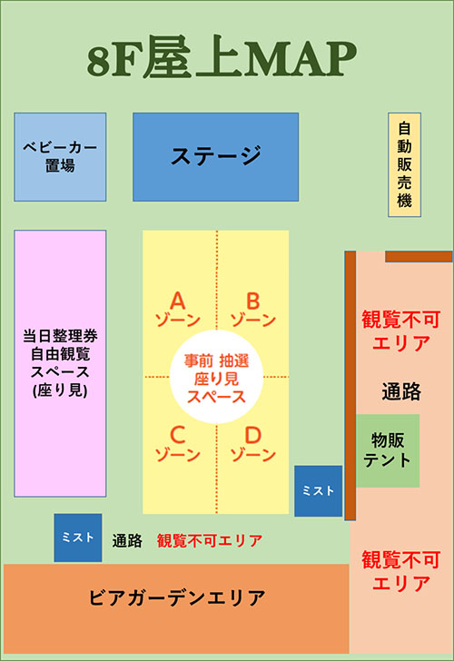 ※人数目安を超えるお客様のご来場があった際は、開場前・イベント開始前等に関わらず観覧スペースまたは屋上への入場を制限させていただく場合がございます。あらかじめご了承ください。