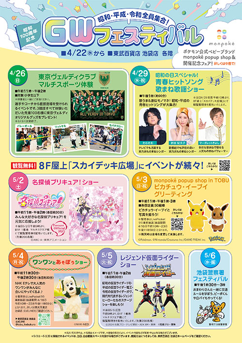 ・雨天・荒天の場合、会場を変更して撮影会を行うため観覧スペースはございません。なお、会場変更の場合は当日午前9時30分までに東武百貨店 池袋店 公式Xでお知らせする予定でございます。※状況により時間が前後する場合がございます。