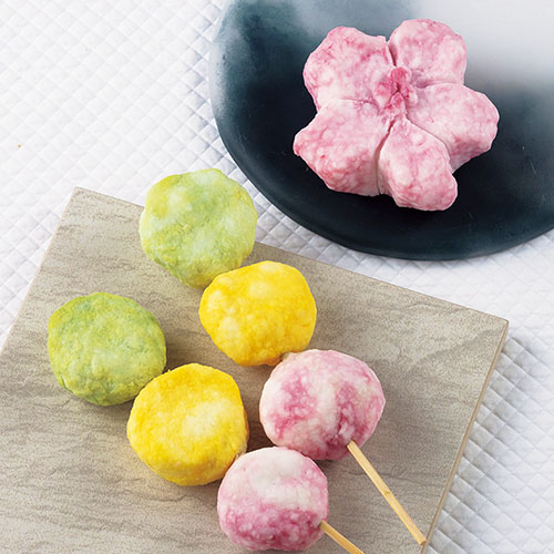 材料をこねこねして、お団子と桜の花びらの形をした石けんを作ろう。