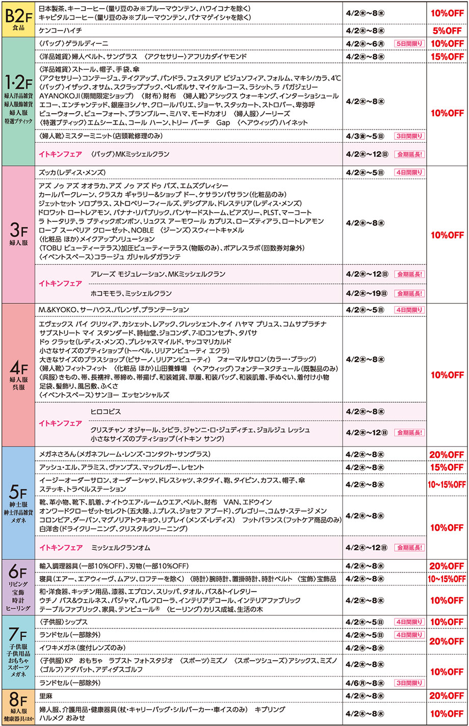 東武の通常商品が10~20%OFF