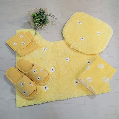 マーガレットの刺繍が散りばめられた、かわいらしいデザインのトイレタリー