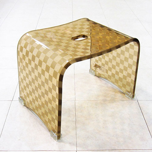 アクリル一枚板で作った、清潔感のあるチェック柄のバスチェアです。