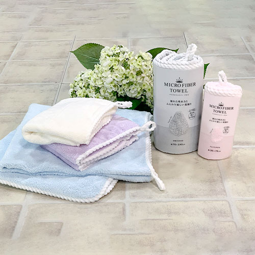 優れた吸水力と、ふんわり優しい手触りのマイクロファイバータオルです。カットパイル仕上げで優しい肌触りを実現しました。