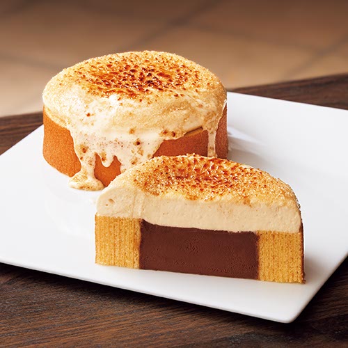 コクのあるチーズスフレの中にカスタードベイクドプリンを閉じ込めた、濃厚スイーツ。