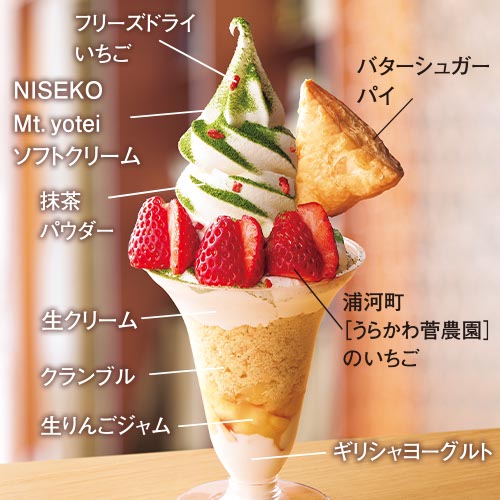 いちごとりんごが爽やかに香る、羊蹄山エリアのミルクを使ったパフェ。