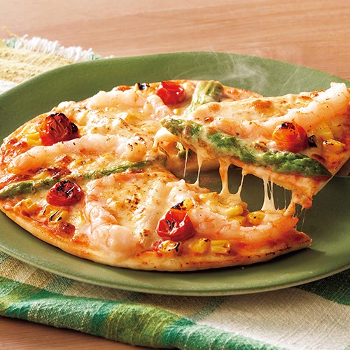 2種のアスパラガスにエビの旨みを合わせた贅沢ピッツァ。