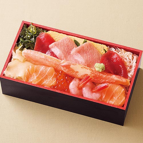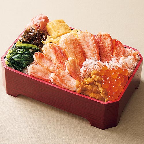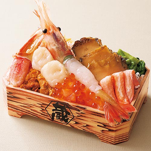 | 詳細 | 戸井産エゾメバル、北海道産いくら昆布巻き、函館海峡マグロ、北海道産ウニ、函館蝦夷蒸しアワビ、函館サーモン、噴火湾紅ズワイガニ、噴火湾甘エビ、噴火湾ホタテ |