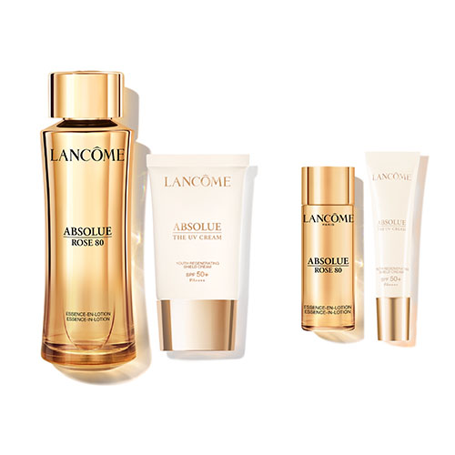 画像は「アプソリュ エッセンス イン ローション」と「アプソリュ ザ UV クリーム」(30ml)を選んだ場合のセット(30,800円)です。