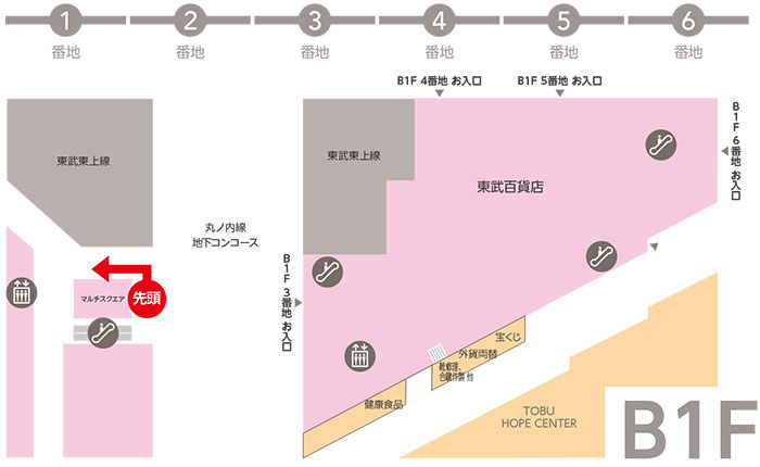 ■整理券配布場所:B1F 1番地 上りエスカレーター前