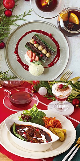キャロットラペとローズマリーポテト、ベリーのティラミスのクリスマス限定セット。