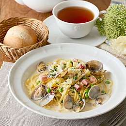 ■あさりとピゼリーニのクラムチャウダーパスタ