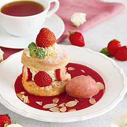 バニラビーンズ入りのさっくりふわっと食感のスコーンにフレッシュ苺、レモンミルクホイップをサンドしました。