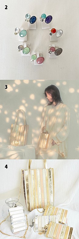 春夏らしい爽やかな色合いの天然石とメタリックレザーの軽やかなバッグのおすすめコーディネートをご紹介いたします。