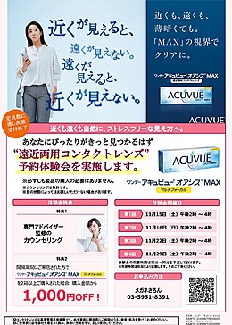 開催期間中にご来店された方でワンデーアキュビューMAXマルチフォーカルを2箱以上ご購入された場合、購入金額から1,000円OFF!