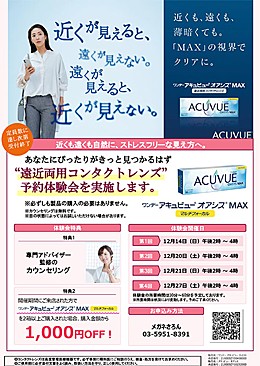 開催期間中にご来店された方でワンデーアキュビューMAXマルチフォーカルを2箱以上ご購入された場合、購入金額から1,000円OFF!