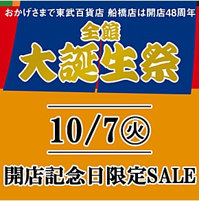 <予告>全館 大感謝祭 10/7(火)開店記念日限定SA