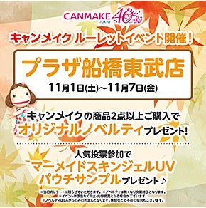 PLAZA船橋東武店では11/1(土)~7(金)の期間中、「CANMAKE(キャンメイク)」の...
