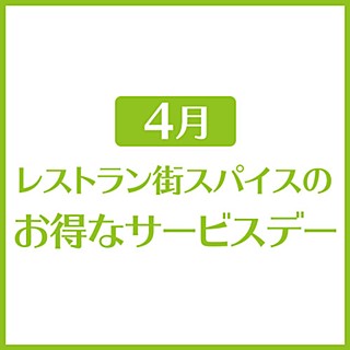 レストラン街スパイス4月 レストラン街スパイスのお得なサービスデー