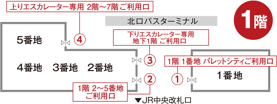 下記以外のお入口および店内の一部階段は閉鎖させていただきます。