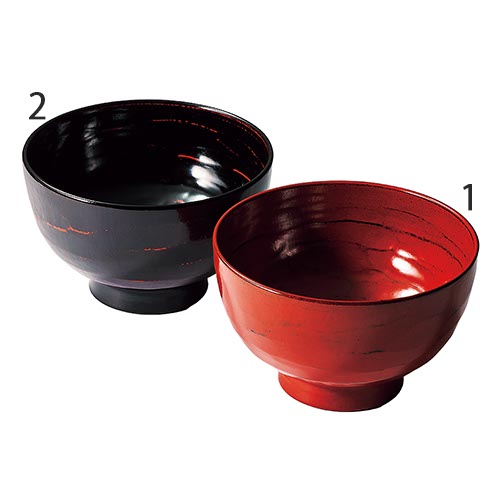 使い込むほどに表面の漆が馴染み、色合いが深まる汁椀。根来は使い込むほどに徐々に深みのある茶褐色へ、曙は下の朱が味わい深い茶系へ。
