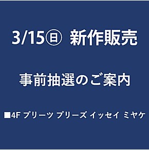 プリーツ プリーズ 3/15(日)新作発売 事前抽選のご
