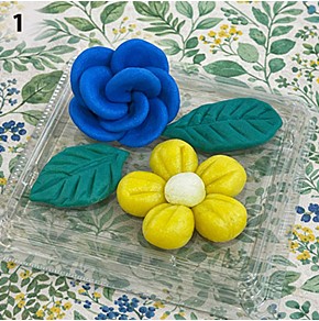 1:「かんてんネンドでホワイトデーのお花を作って贈ろう!」 かんてんネンドで青いバラと黄色い...