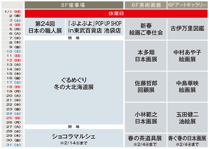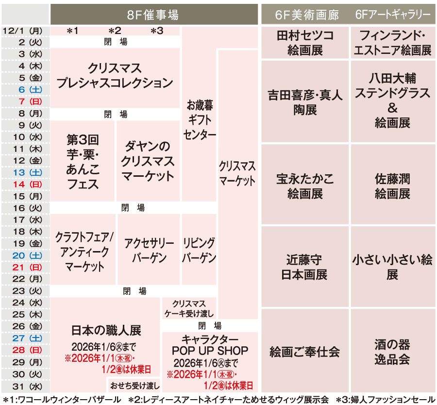 ※6F美術画廊・アートギャラリーは最終日午後5時閉場。