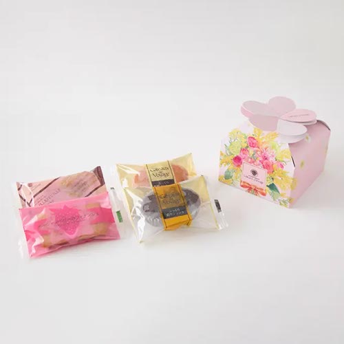 季節限定の桜と緑茶、定番のミルクチョコレートを包んだプチギフト。