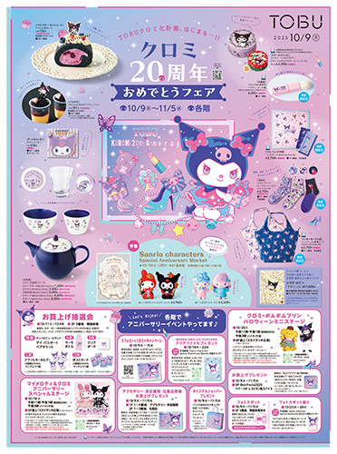 イベントガイド \最新のチラシ・カタログ/ Tweet 会期 2025年10月9日(木)~ 折込チラシカタログ 東武百貨店 池袋店の 最新チラシ・カタログ 詳しくは画像をクリック! 【10/16号折込】 【10/9号折込】 【クロミ20周年おめでとうフェア】 【2025 東武クリスマスケーキ】 【令和八年 東武のおせち】 【TOBU BRIDAL RING COLLECTION】 【2026 東武のランドセル】 イベント一覧