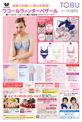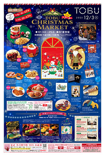 イベントガイド \最新のチラシ・カタログ/ Tweet 会期 2025年11月27日(木)~ 折込チラシカタログ 東武百貨店 池袋店の 最新チラシ・カタログ 詳しくは画像をクリック! 【12/3号折込】 【11/27号折込】 【2025 東武クリスマスケーキ】 【2025 東武クリスマスギフト】 【2026年 東武の福袋】 【2025 東武のお歳暮】 【令和八年 東武のおせち】 【TOBU BRIDAL RING COLLECTION】 【2026 東武のランドセル】 イベント一覧