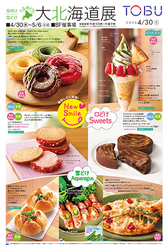 イベントガイド \最新のチラシ・カタログ/ Tweet 会期 2026年4月22日(水)~ ※上記日付は、HP更新日となります。 折込チラシカタログ 新聞折込・チラシ カタログ 東武百貨店 池袋店の 最新チラシ・カタログ 詳しくは画像をクリック! 新聞折込・チラシ 【4/30号折込】 【4/22号折込】 【GWフェスティバル】 カタログ 【TOBU BRIDAL RING COLLECTION】 【2027 東武のランドセル】 イベント一覧