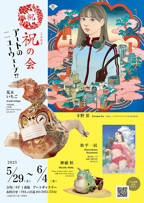 このたびアートギャラリーにおきまして『佐藤潤 絵画展』を開催させていただきます。色鮮やかで活き活きとした花鳥百獣の世界を描く佐藤潤氏。動物にまつわる吉祥や風習、縁起物などを独創的な世界観で表現した新しい動物画の作品をご紹介いたします。