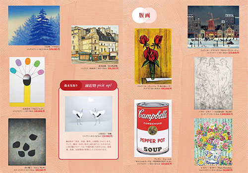 このたび美術画廊におきまして『歳末 絵画ご奉仕会』を開催させていただきます。新春を飾るにふさわしい縁起物をモチーフにした作品のほか、藤田嗣治、千住博、ベルナール・ビュッフェなど国内外の巨匠作家から若手人気作家まで、日本画や洋画、版画など、個性的な絵画を一堂に取り揃え、ご奉仕価格にてご紹介いたします。