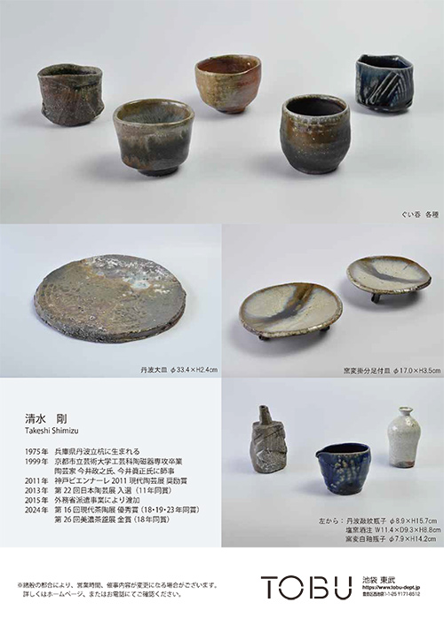 兵庫県丹波にて卓越した技術と芸術的な感性で独創的に作陶し続ける清水剛氏。日本六古窯の一つ丹波立杭で焼かれた丹波焼。薪窯によって生み出される土味と釉薬の味わいを生かした作品や新たな可能性を見出した窯変の美しい作品をご紹介いたします。