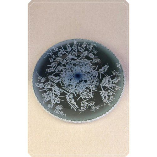 墨地紫苑釉裏銀彩草文縄目飾皿