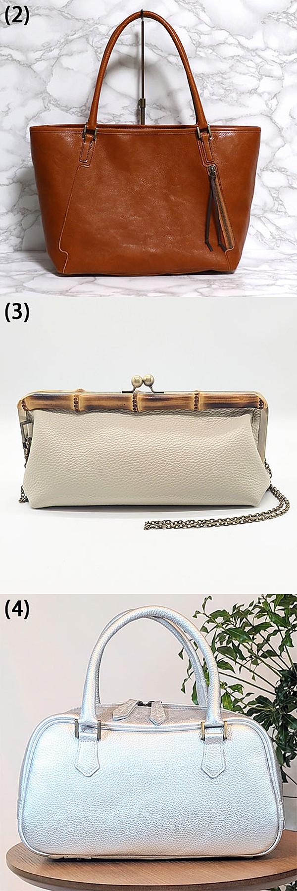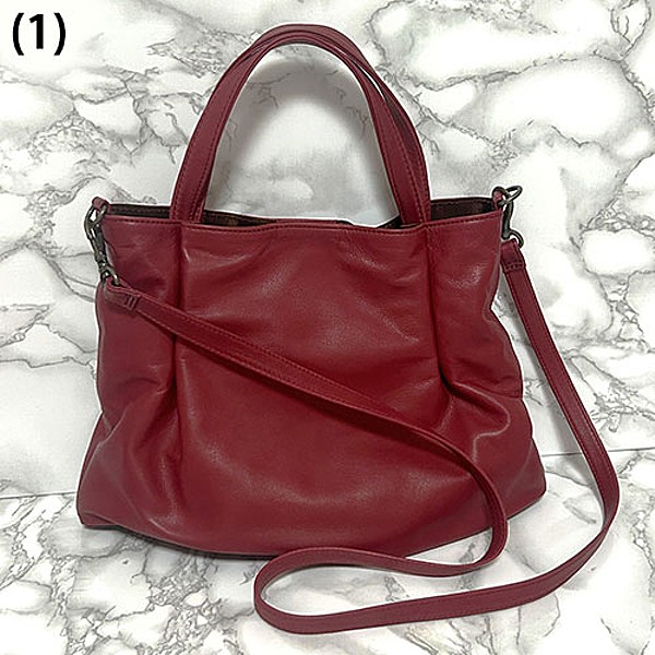 (1) KUGIRI創業当時から人気のデザインです。ランチバッグのサイズ感でワンハンドル、ショルダーストラップもついております。