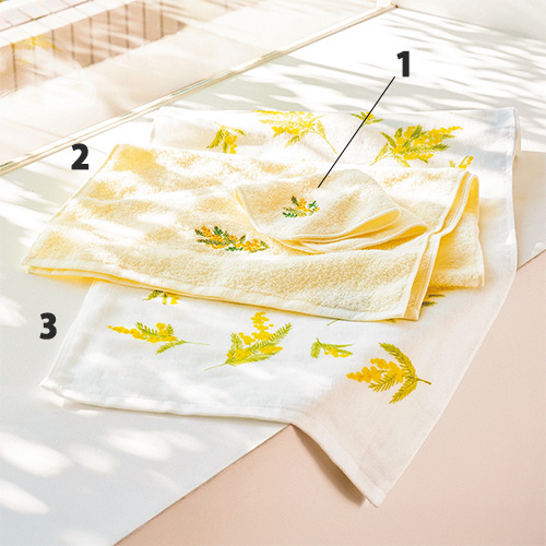 ふわふわとした小さくかわいいミモザを上品に配したデザイン。