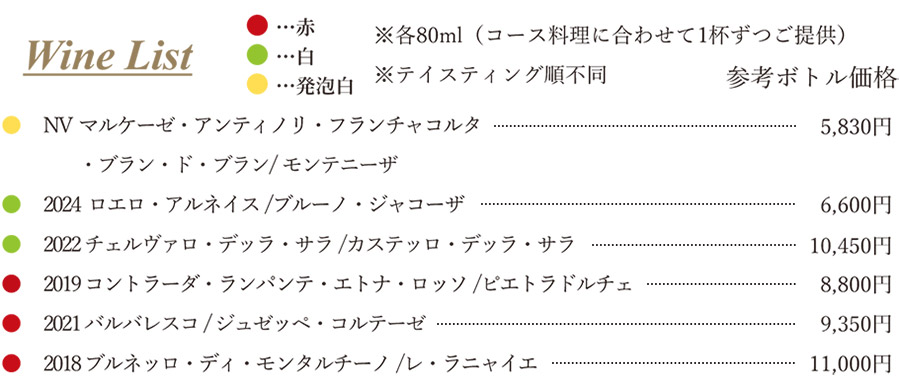 (お食事、ワイン、サービス料込み)