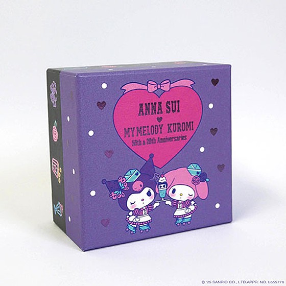 アメリカンダイナーをテーマにしたレトロでキュートなウェイトレススタイルのマイメロディとクロミに、デザイナーであるアナ・スイを表現したサンデーモチーフや、[ANNA SUI]らしいパープルカラーの蝶や薔薇をあしらった、ここでしか手に入らないスペシャルなデザインです。