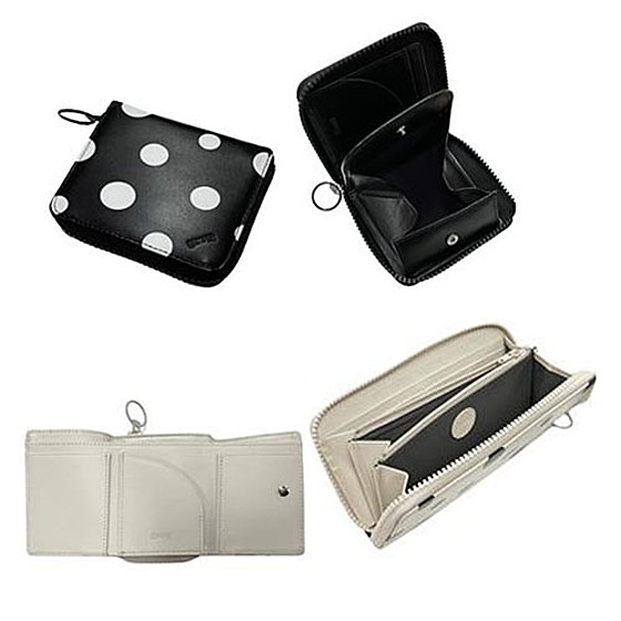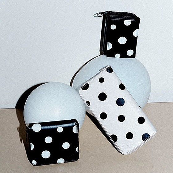 既存の財布シリーズ「JILL」に、シューズコレクションと連動したポルカドット柄をあしらったシリーズ。ランダムに配置された大小のドットが軽やかで弾むような印象を演出します。革と同色のビスロンファスナーが柄を引き立て、統一感のあるスマートな仕上がりになっています。