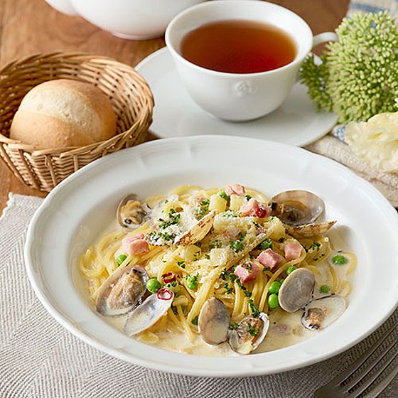 ■あさりとピゼリーニのクラムチャウダーパスタ