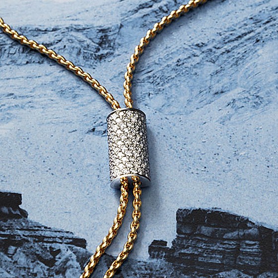注目は、新作「ARIA(アリア)」ネックレス。位置調整が可能なスライディングクラスプを備えた新しいデザインで、ループタイのようなスタイルも楽しめる、自由度の高いアイテムです。